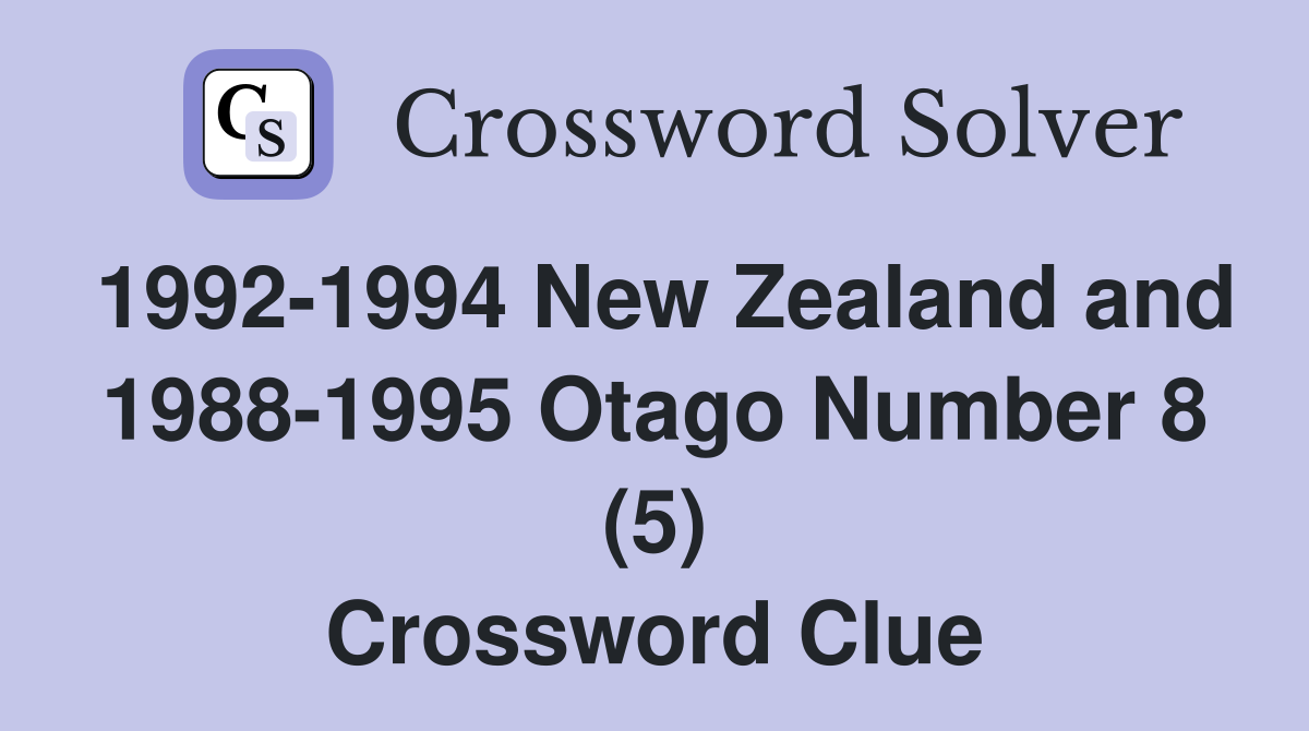 1992 1994 New Zealand and 1988 1995 Otago Number 8 (5) Crossword Clue