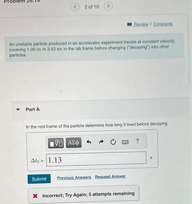 Solved 2 of 10 An unstable particle produced in an Chegg com