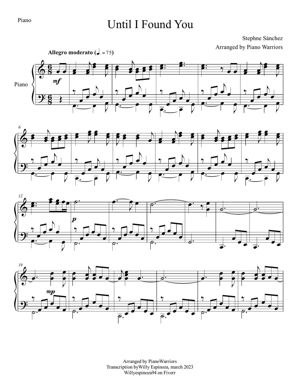 Stephen Sanchez Until I Found You Sheets by Piano Warriors