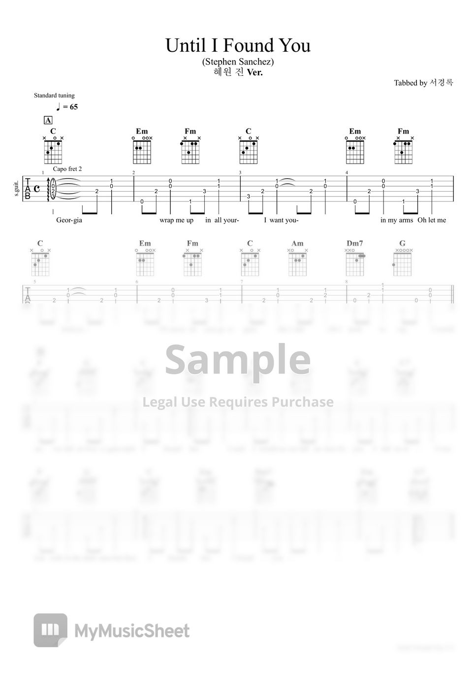 Stephen Sanchez Until I Found You (혜원 진 Ver ) TAB by 서경록