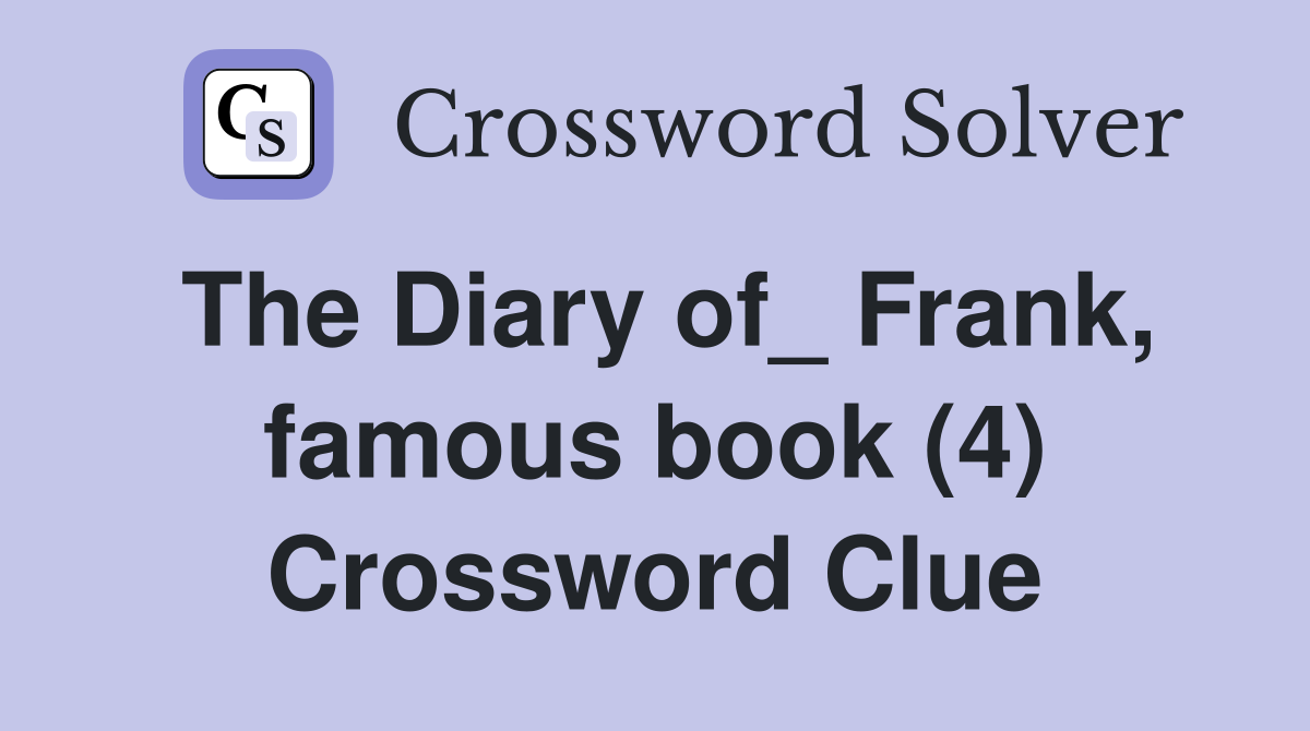 The Diary of Frank famous book (4) Crossword Clue Answers