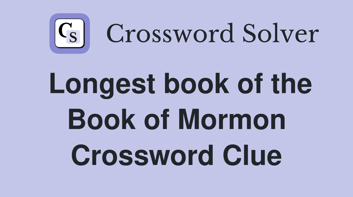 Longest book of the Book of Mormon Crossword Clue Answers Crossword