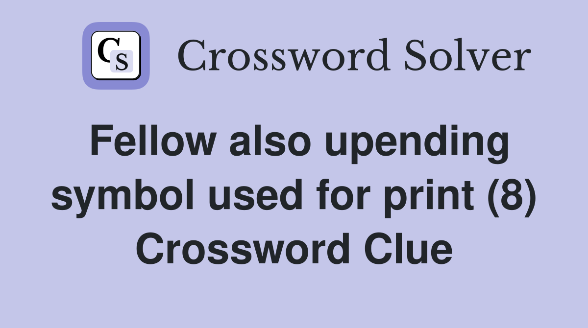 Fellow also upending symbol used for print (8) Crossword Clue Answers
