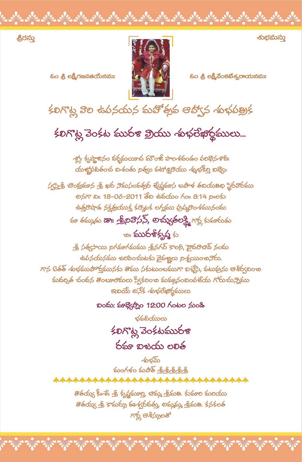 Upanayanam Invitation Template