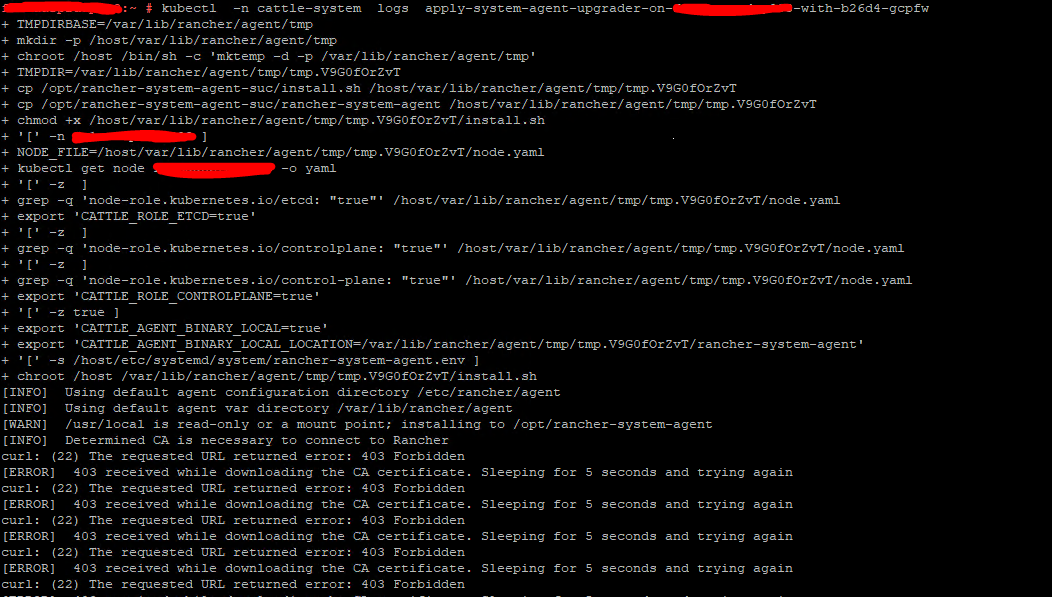 BUG 403 while trying to connect to Rancher for upgrade from 1 0 0 to