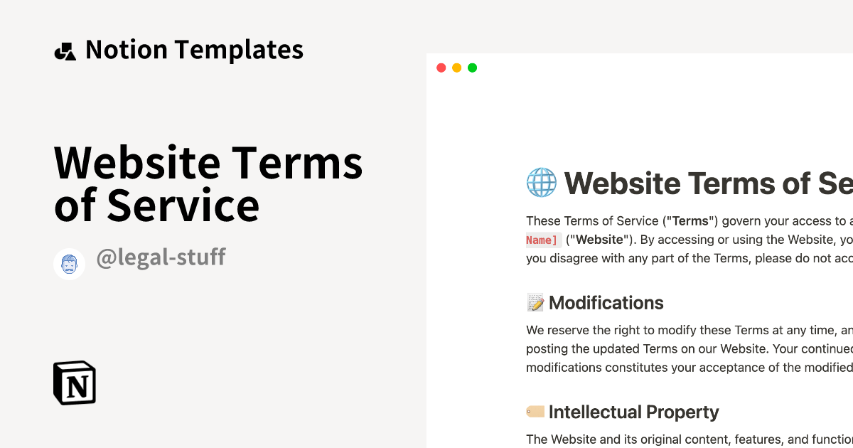 Website Terms of Service Template by Legal Stuff Notion Marketplace