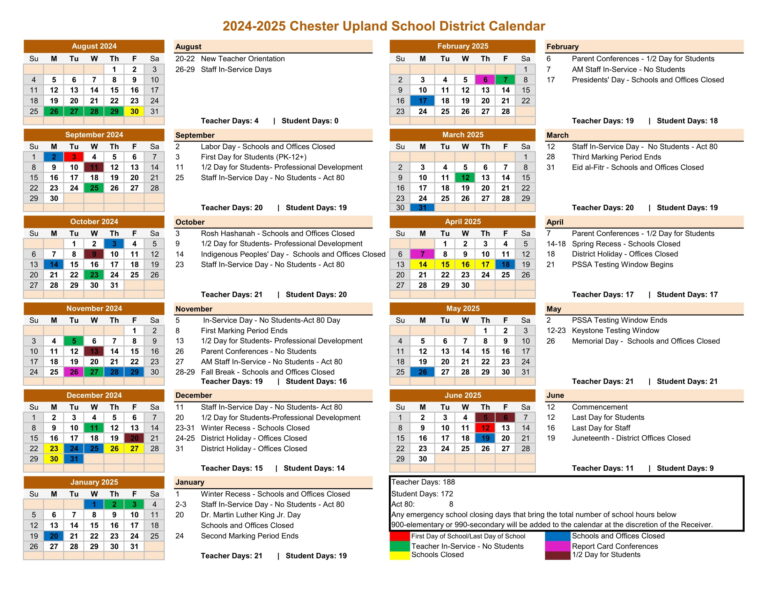 Chester Upland School District Calendar 24 25 PDF revised EduCounty