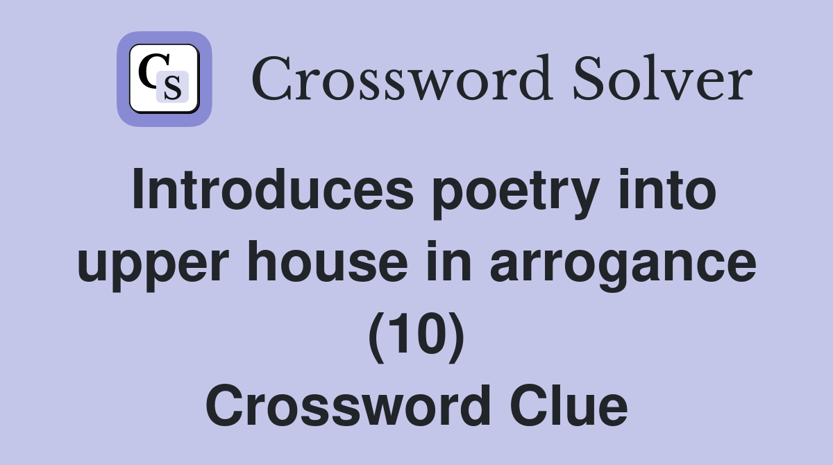 Introduces poetry into upper house in arrogance (10) Crossword Clue