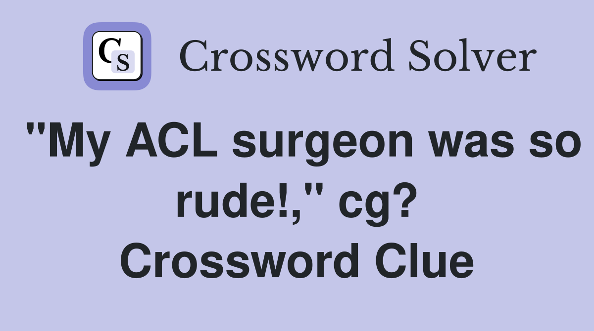 quot My ACL surgeon was so rude quot cg? Crossword Clue Answers Crossword
