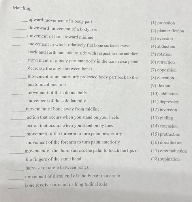 Solved Matching 4 upward movement of a body part (1) Chegg com