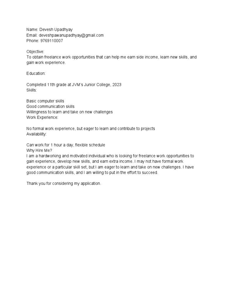 Favorite Cover Letter For Upwork Sample Career Objective It Resume