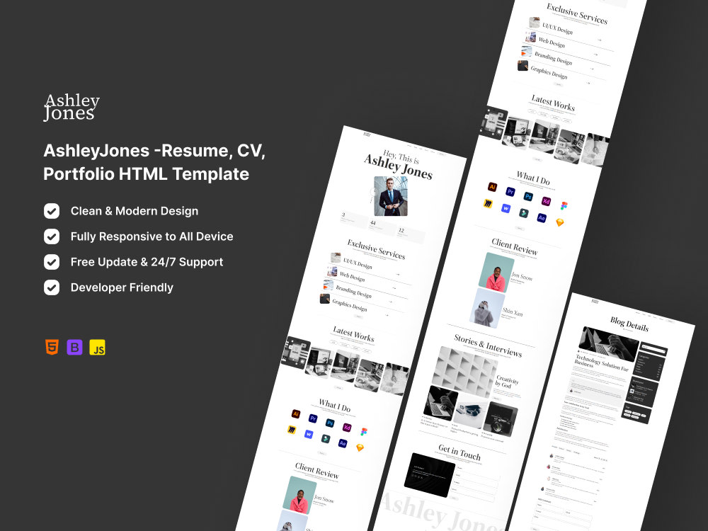 AshleyJones Resume CV Portfolio HTML Template Upwork