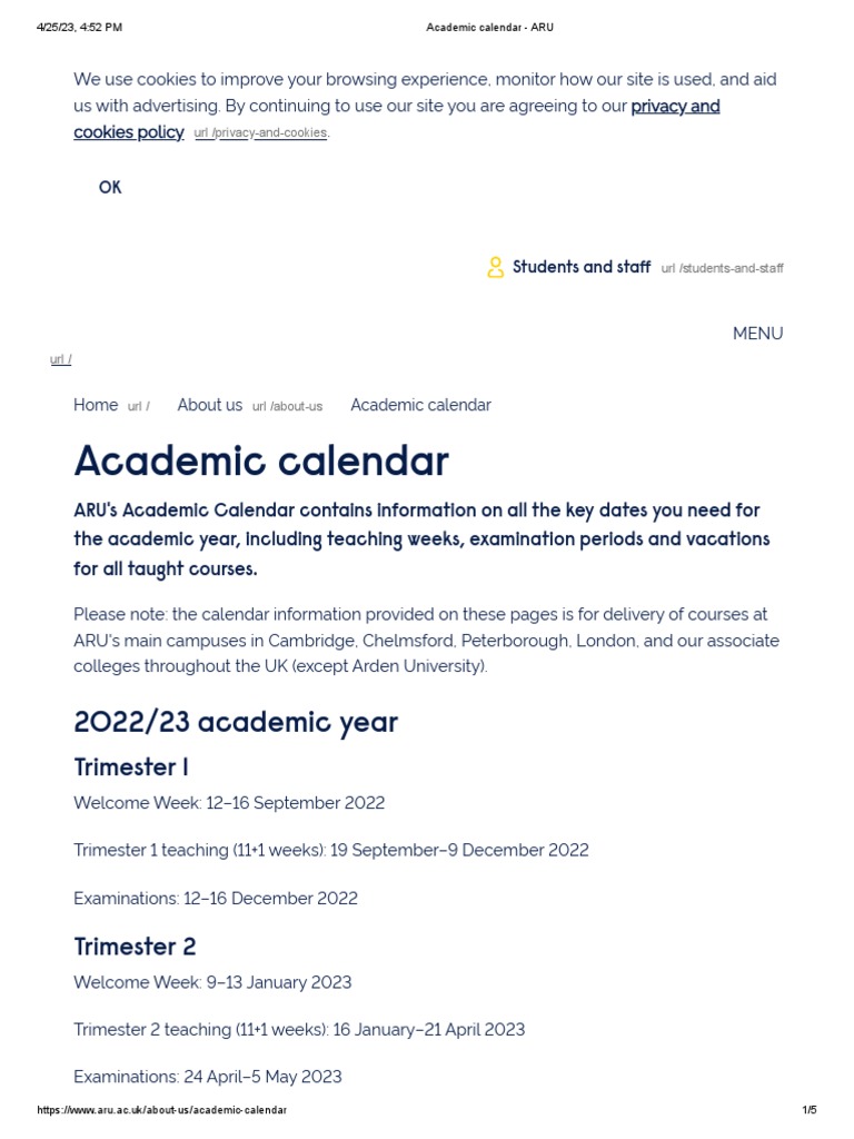 Academic Calendar ARU PDF Academic Term