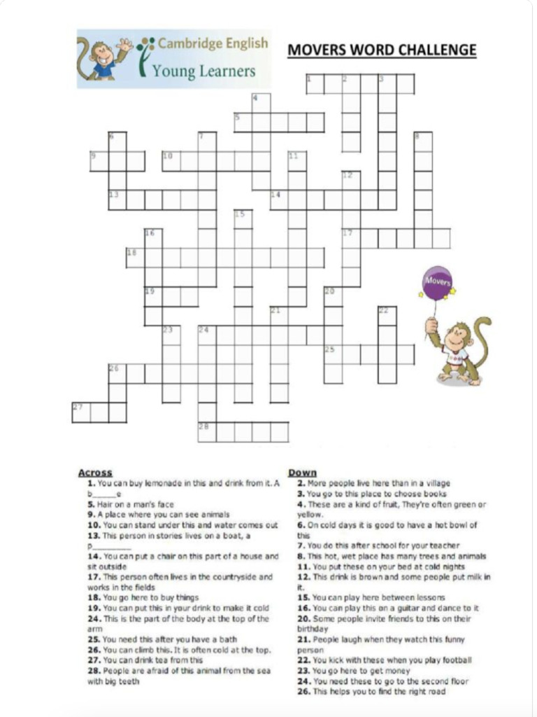 YLE Cambridge Movers Vocabulary crossword ESL worksheet by hjelliman