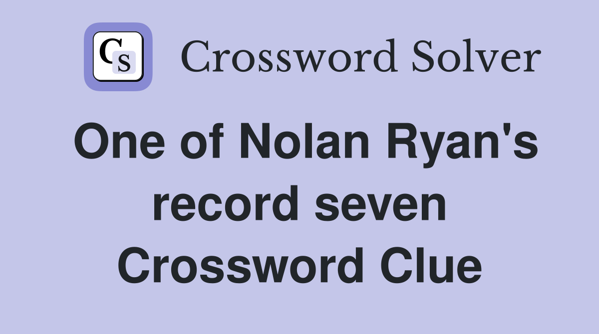 One of Nolan Ryan #39 s record seven Crossword Clue Answers Crossword
