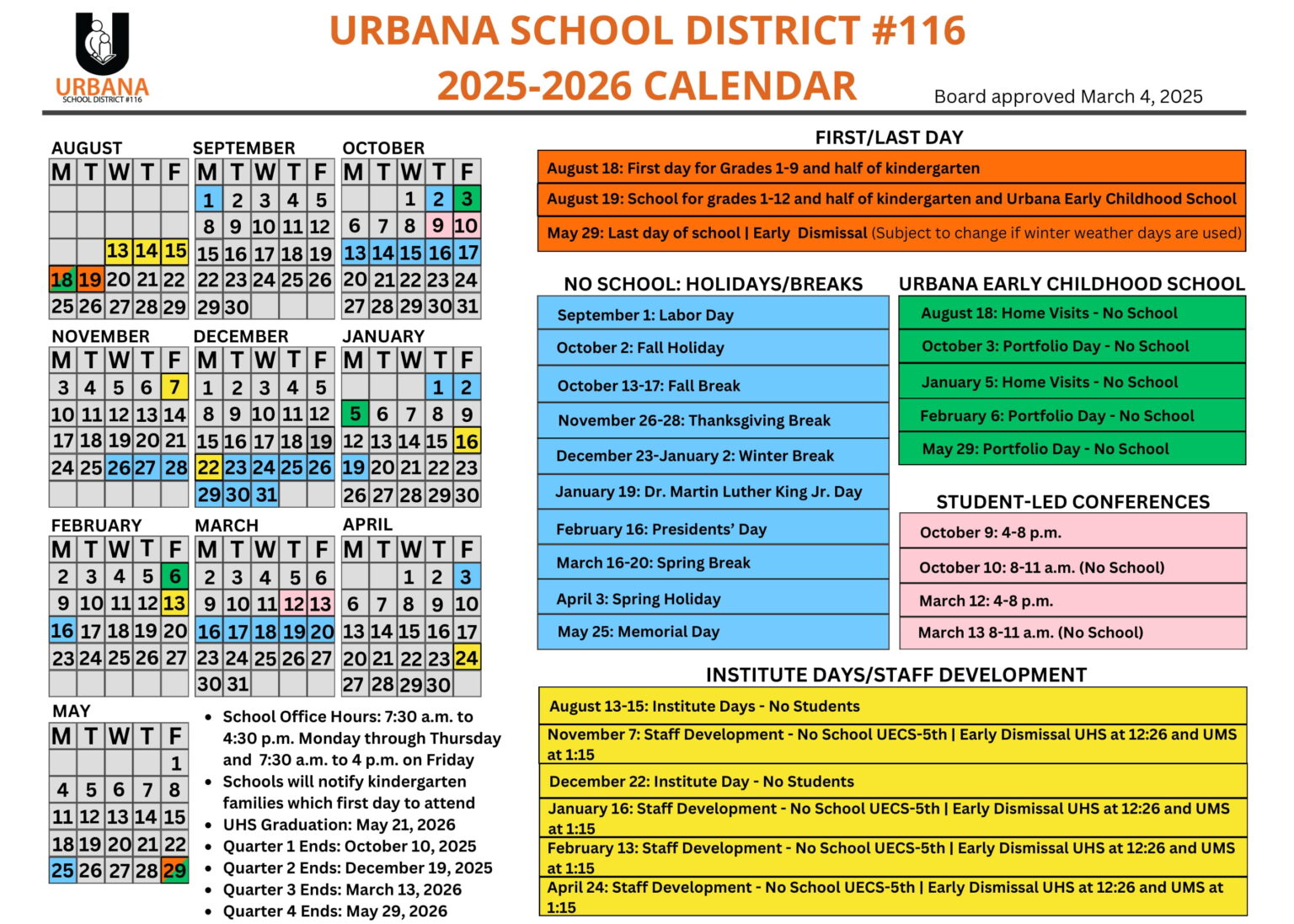 Urbana School District 116 Calendar 25 26 REVISED EduCounty