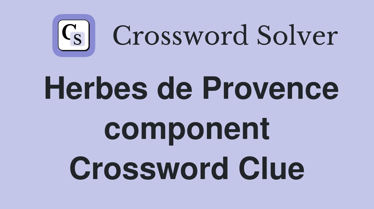 Herbes de Provence component Crossword Clue Answers Crossword Solver