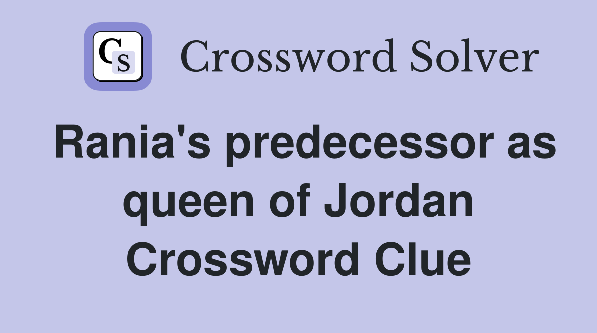 Rania #39 s predecessor as queen of Jordan Crossword Clue Answers