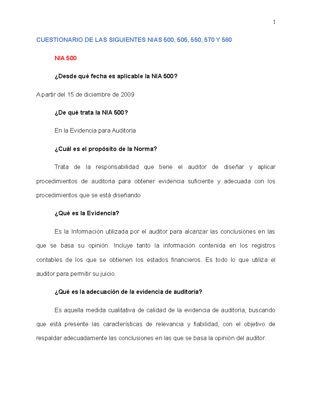 Cuestionario NIAS CUESTIONARIO DE LAS SIGUIENTES NIAS 500 505 550