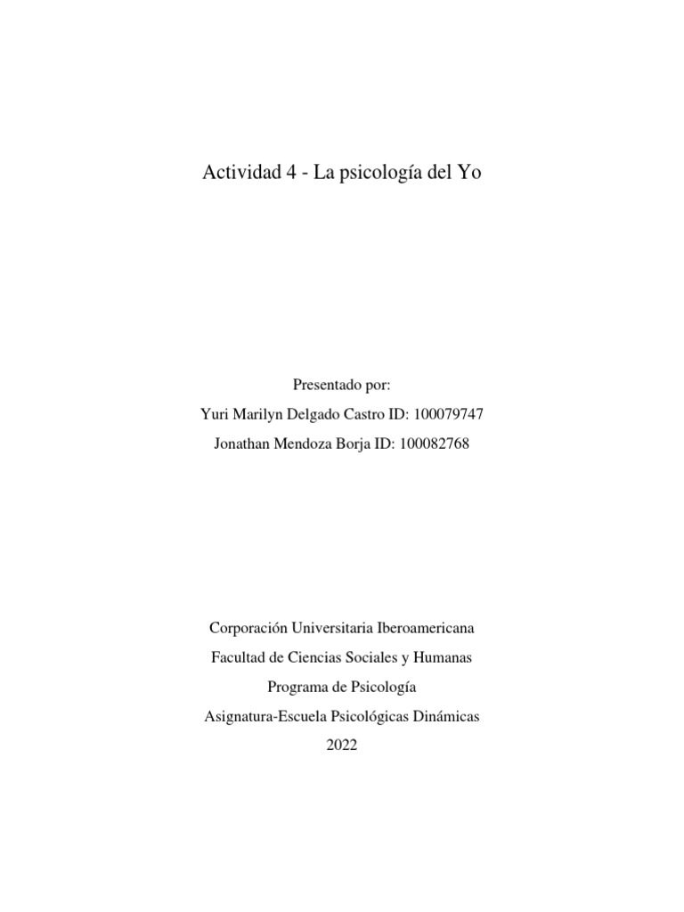 Actividad 4 La Psicología Del Yo PDF Psicoanálisis Psicología