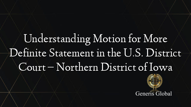 Understanding Motion for More Definite Statement in the U S District
