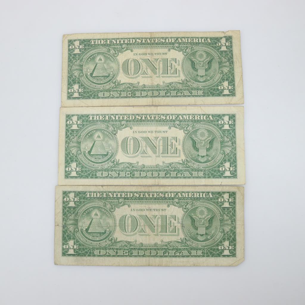 US One Dollar Silver Certificate 3 Pieces Property Room