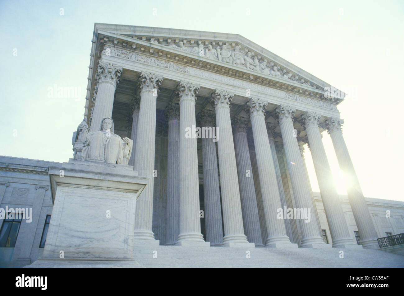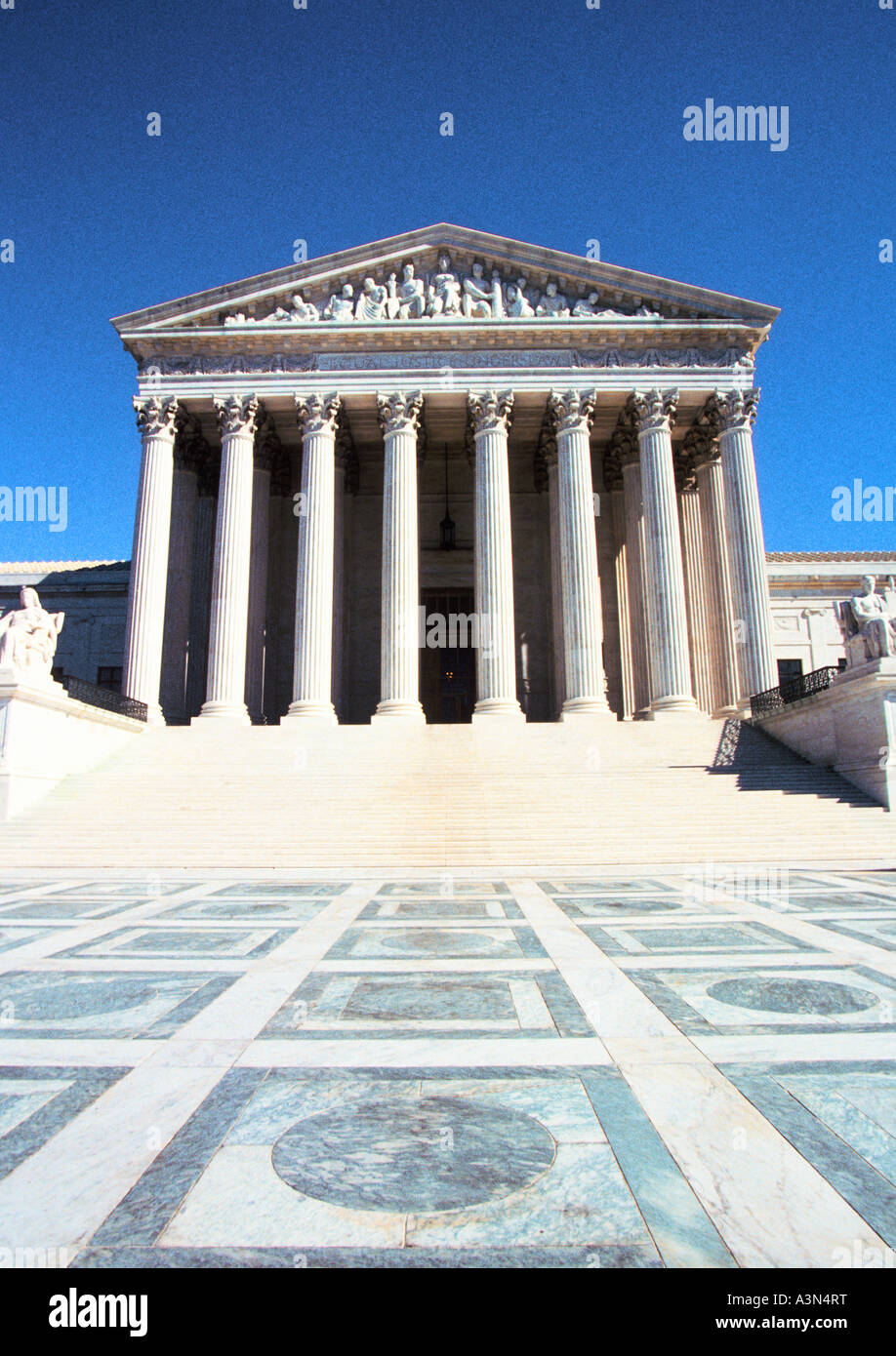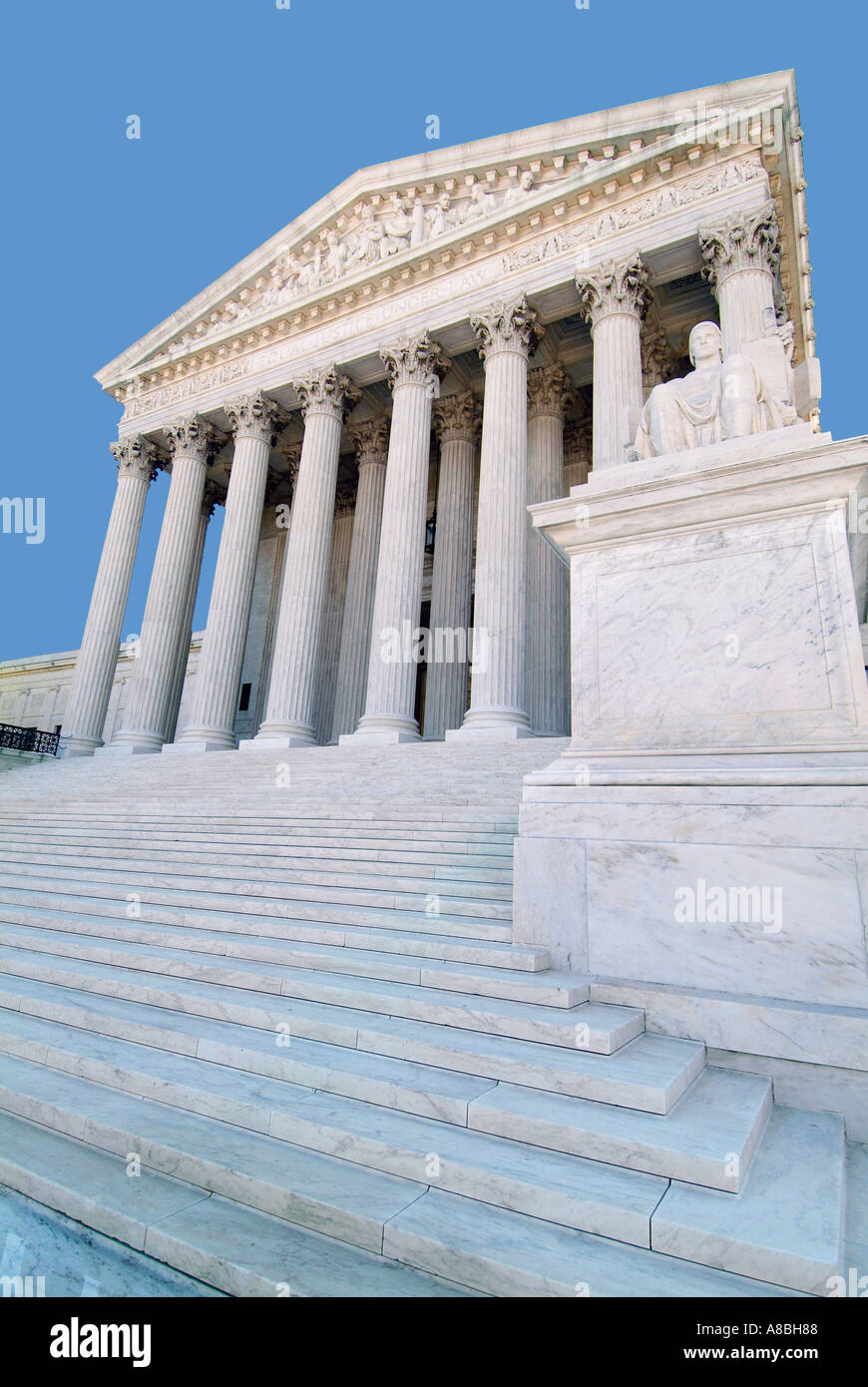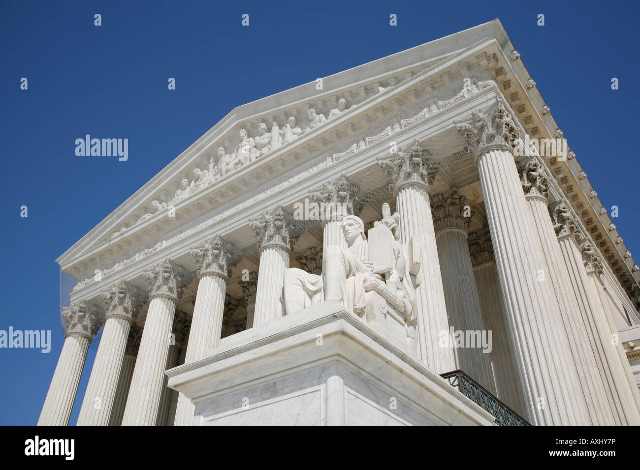 The front of the US Supreme Court building in Washington DC Stock