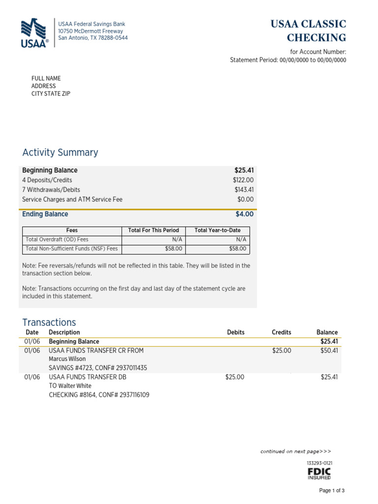 USAA Statement (Template) PDF Transaction Account Overdraft