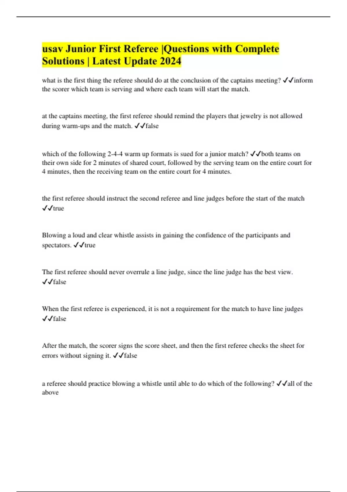 usav Junior First Referee Questions with Complete Solutions Latest
