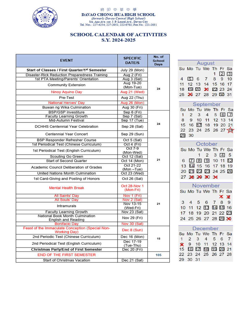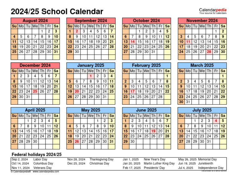 School Calendar 2024 2025 PDF Academic Term Observances