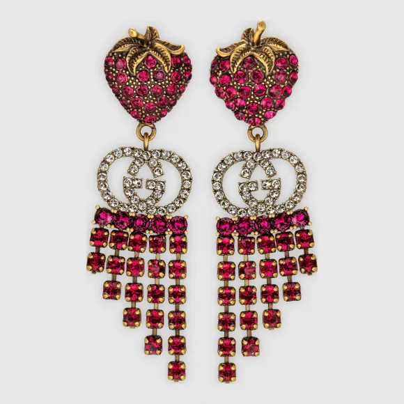 古驰/Gucci 饰水晶草莓耳环 580959 I4769 8413 小迈步海淘品牌官网