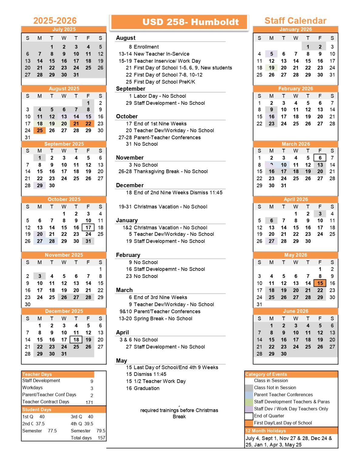 Humboldt USD 258 Calendar 25 26 Revised pdf EduCounty
