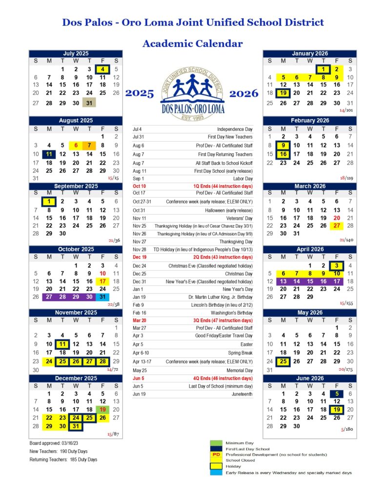 Dos Palos Oro Loma USD School Calendar 25 26 PDF EduCounty