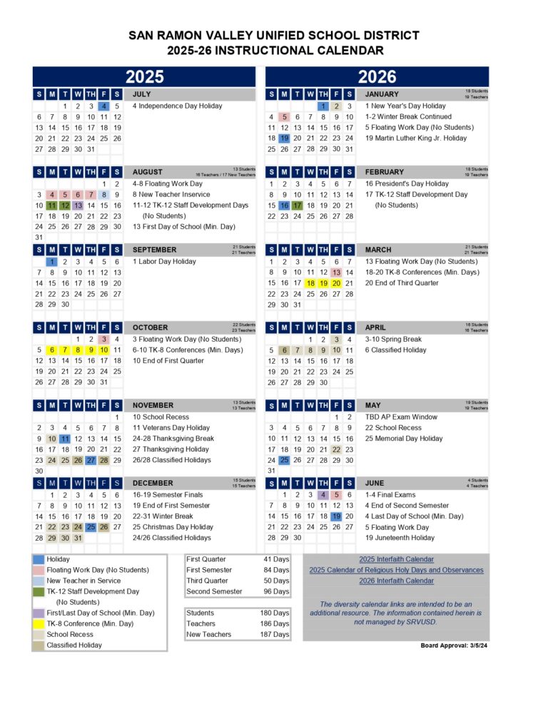 San Ramon Valley USD School Calendar 25 26 PDF EduCounty