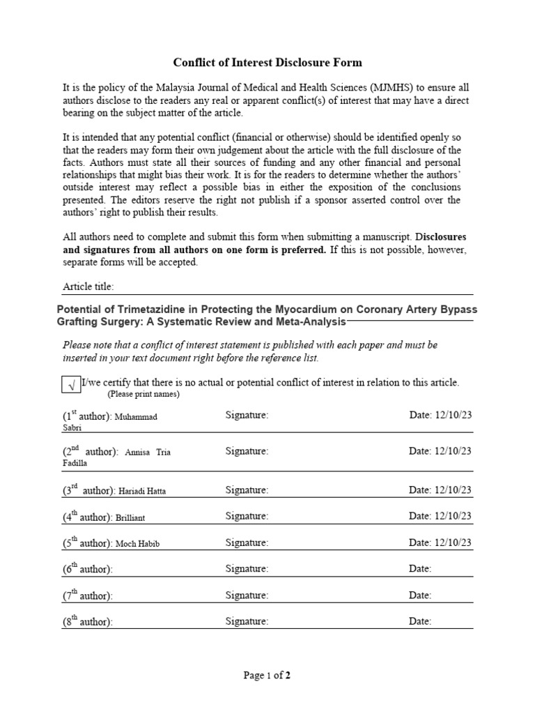 Conflict of Interest Form 1 PDF Conflict Of Interest