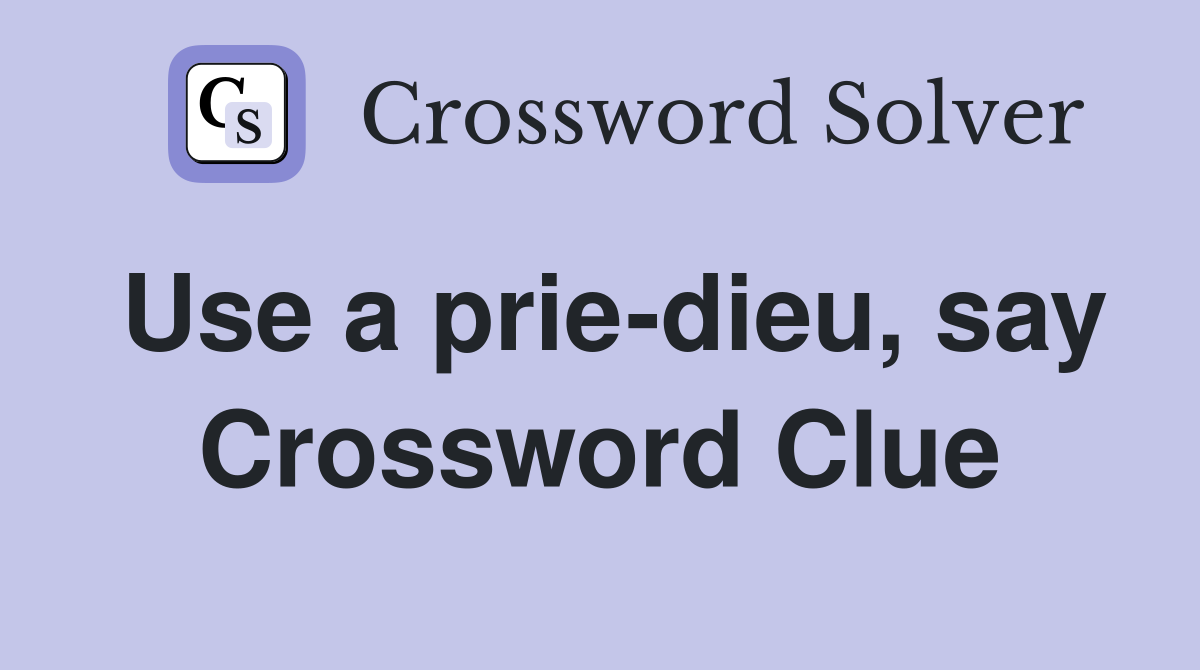 Use a prie dieu say Crossword Clue Answers Crossword Solver