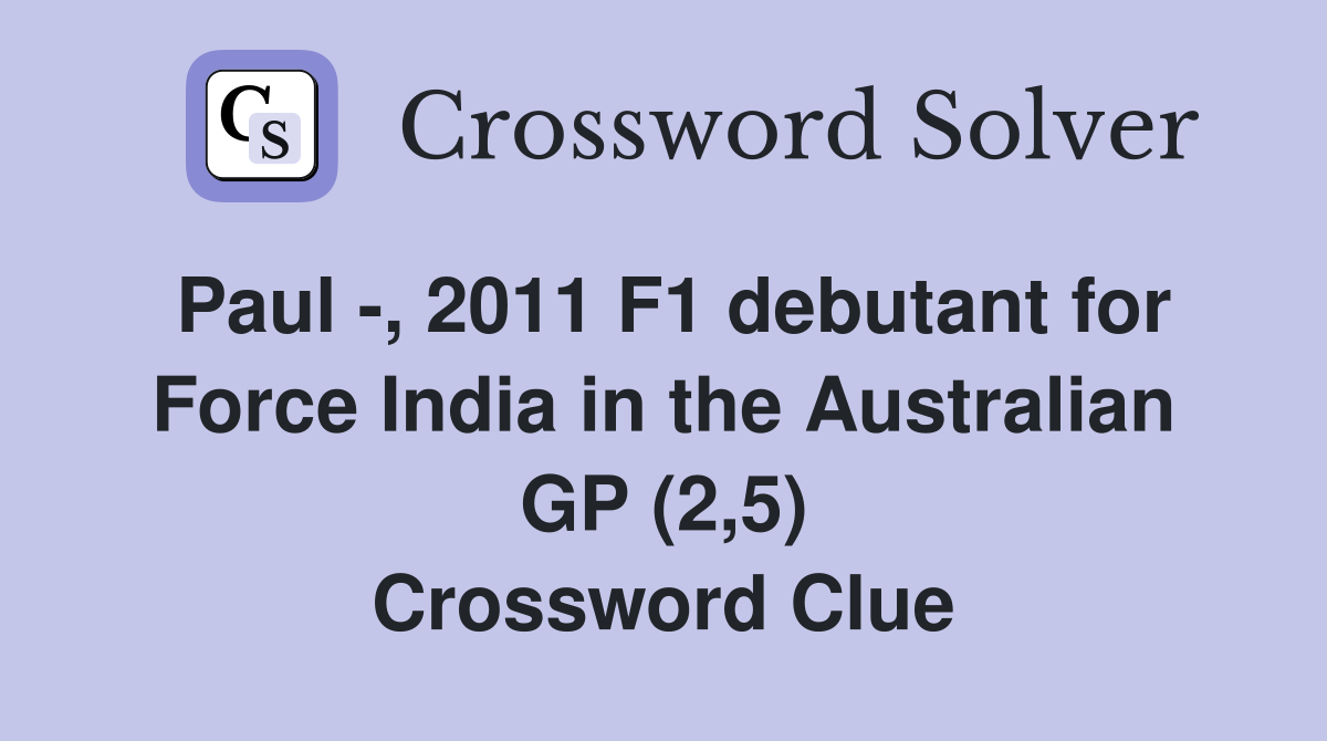 Paul 2011 F1 debutant for Force India in the Australian GP (2 5