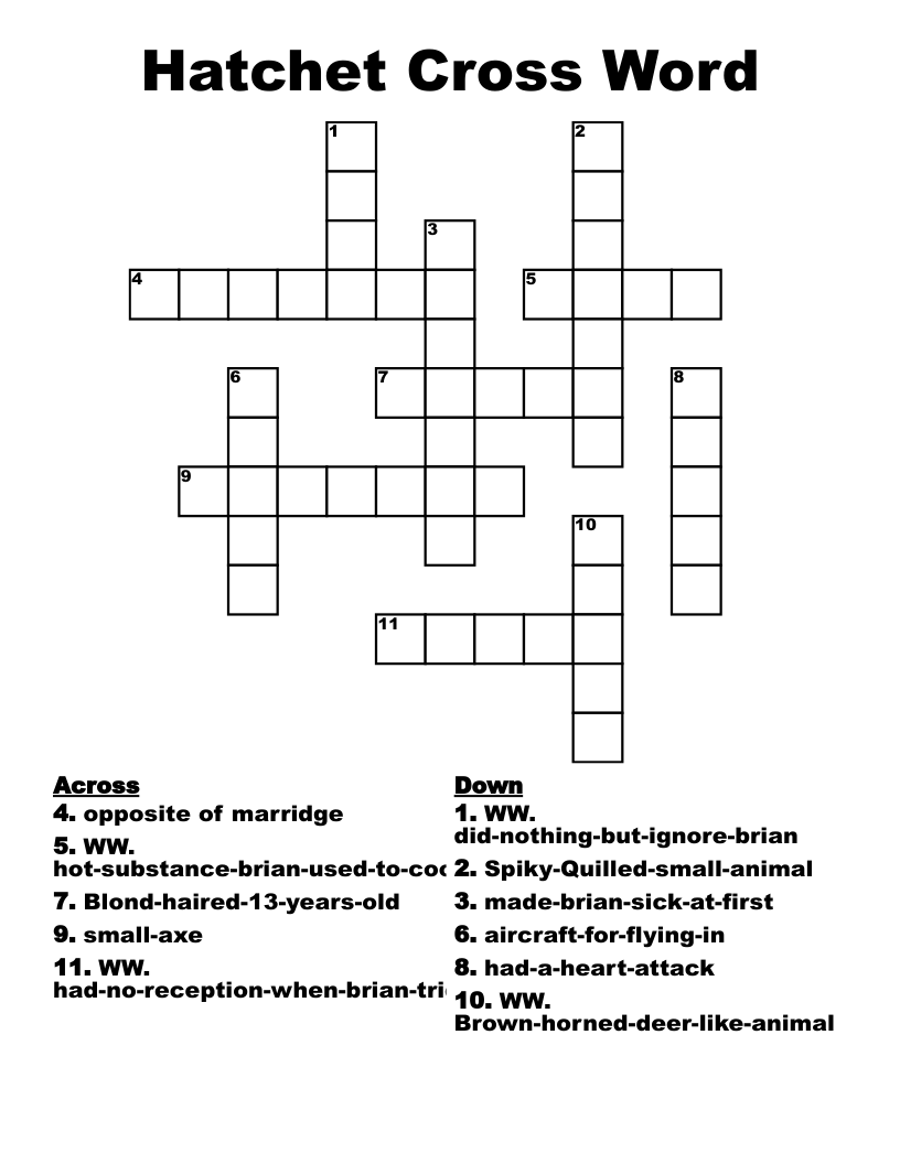 HATCHET Crossword Puzzles All About HATCHET Crossword Activities