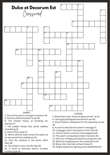 Dulce et Decorum Est Revision Crossword Teaching Resources