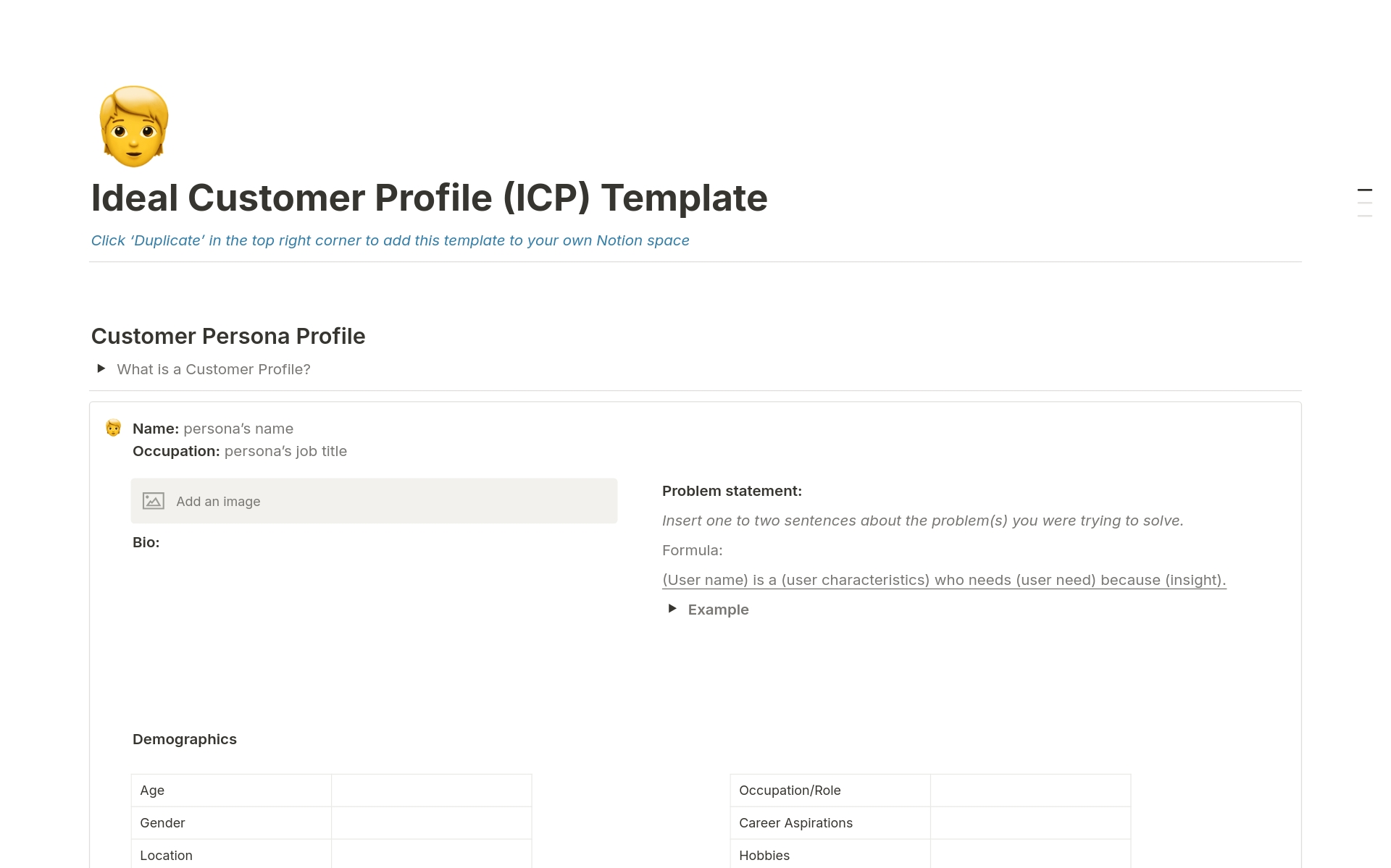 来自 Notion 的免费 用户画像 模板 Notion 市集