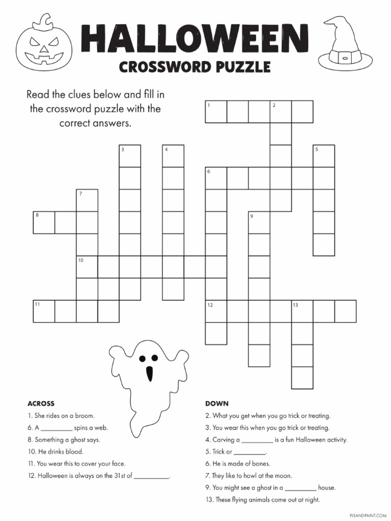 Halloween Crossword Puzzle Pjs and Paint PDF