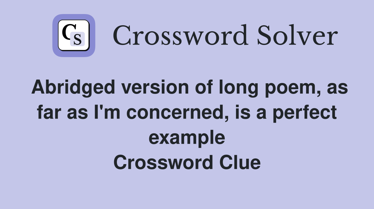 Abridged version of long poem as far as I #39 m concerned is a perfect