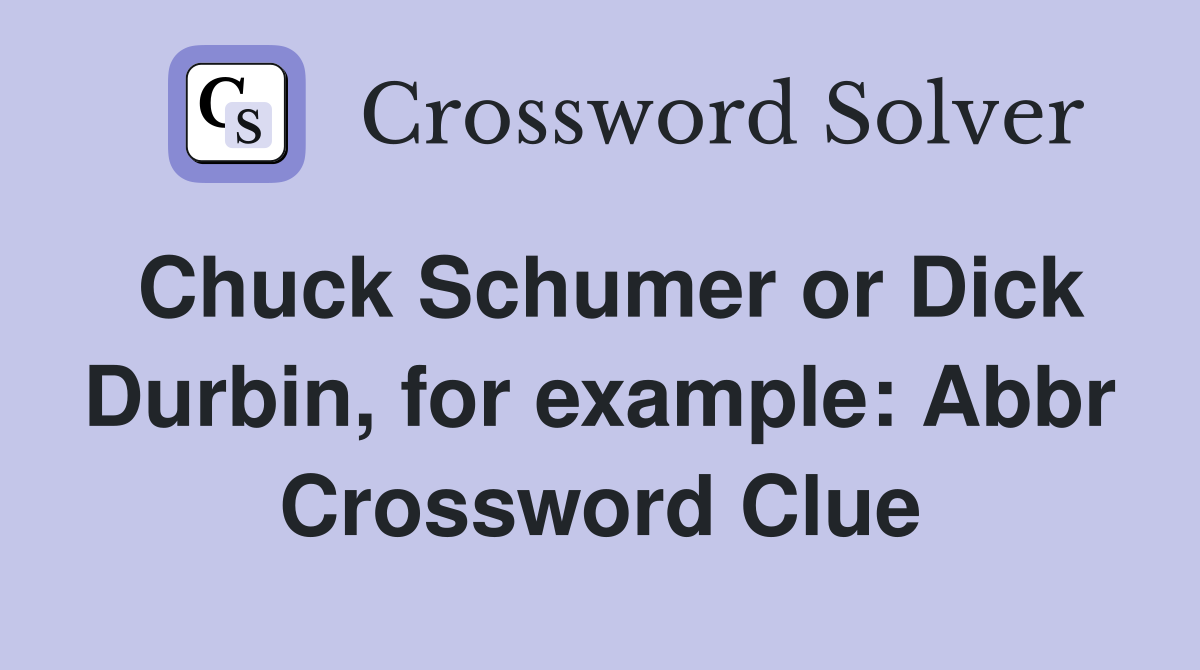 Chuck Schumer orDurbin for example: Abbr Crossword Clue