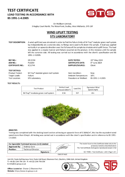 Certification M Tray Wind Uplift Test Wallbarn Ltd NBS Source