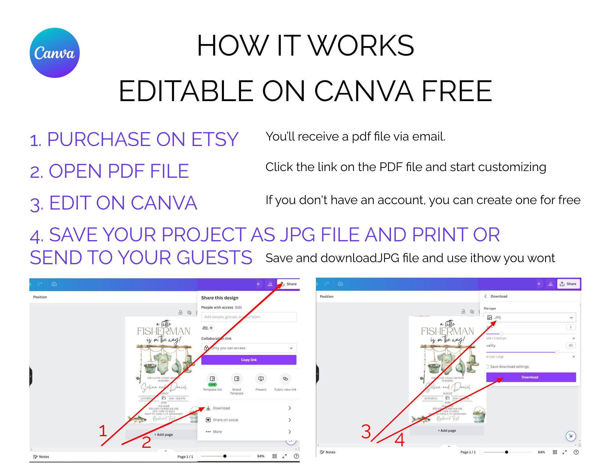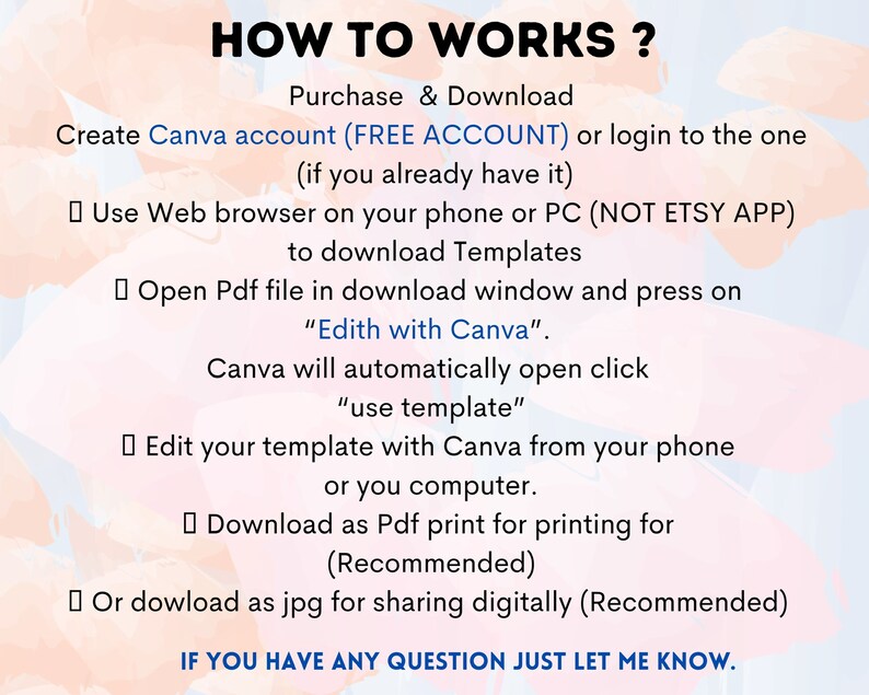 Canva Download Instructions Template Etsy Digital Product Instructions