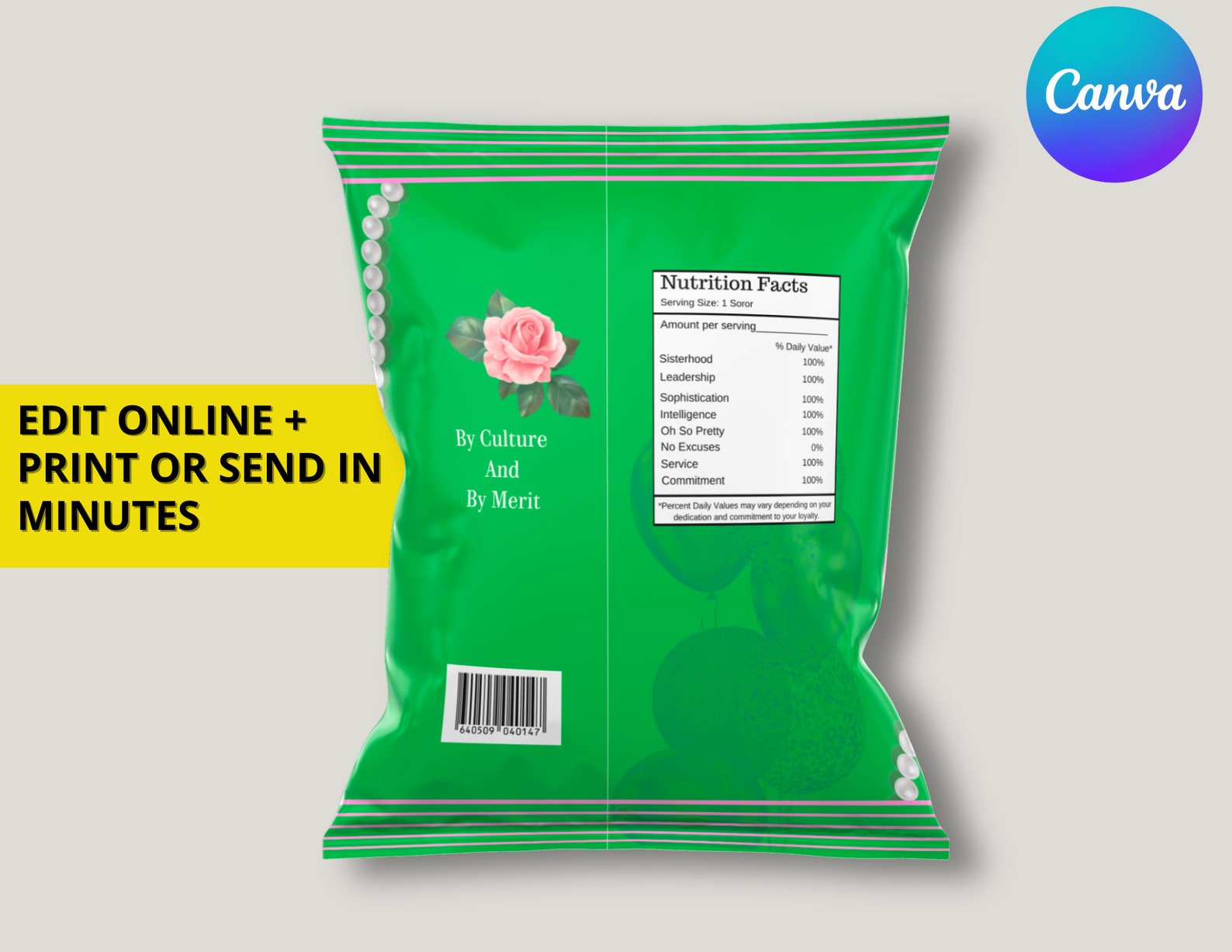 Editable Pink Green Chip Bag Wrapper Printable AKA Chip Bag Label