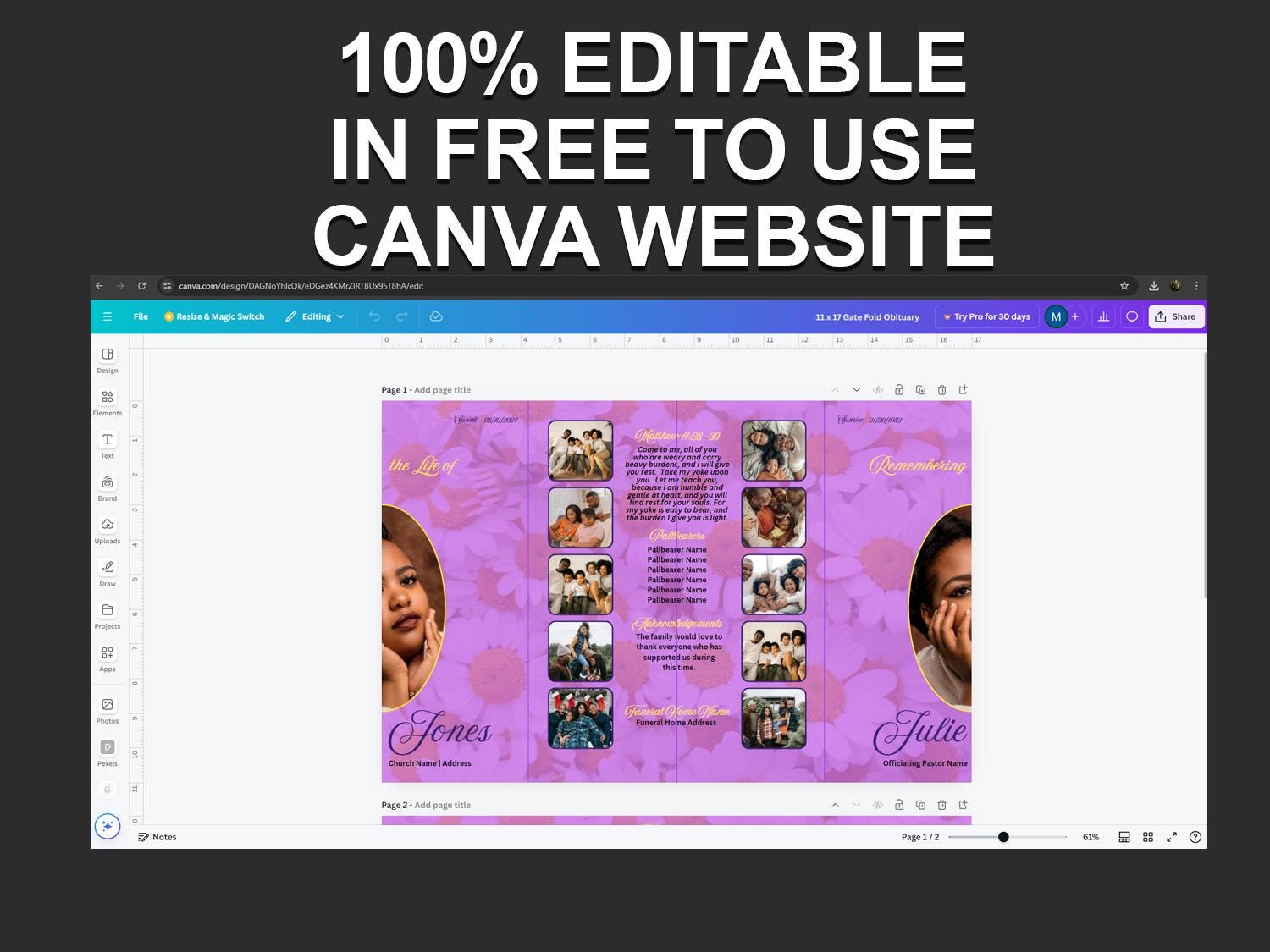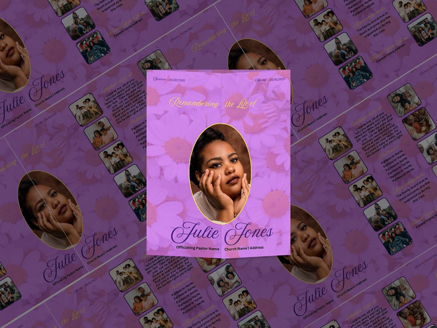 Gate Fold Funeral Program Template Modern Style Magenta Yellow