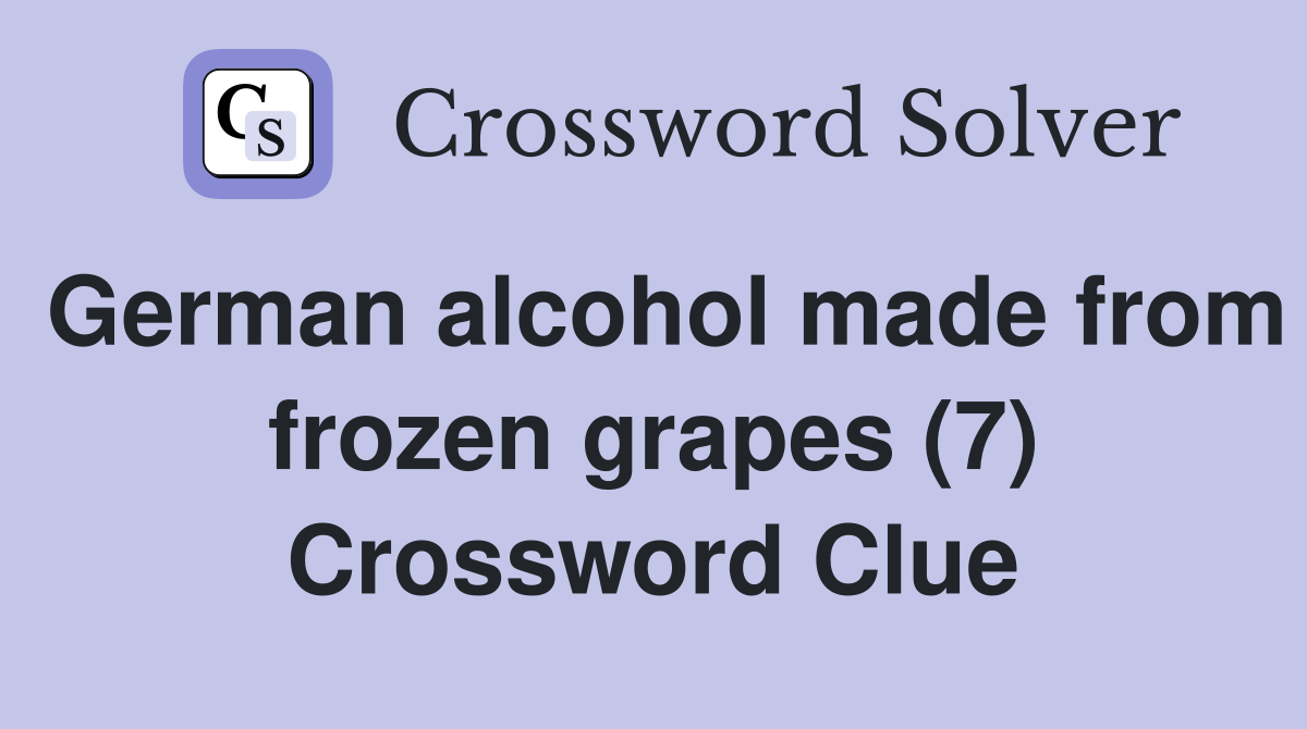 German alcohol made from frozen grapes (7) Crossword Clue Answers