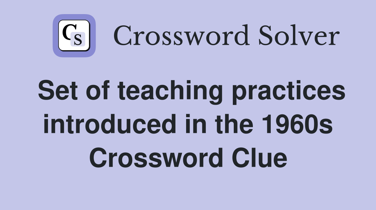 Set of teaching practices introduced in the 1960s Crossword Clue