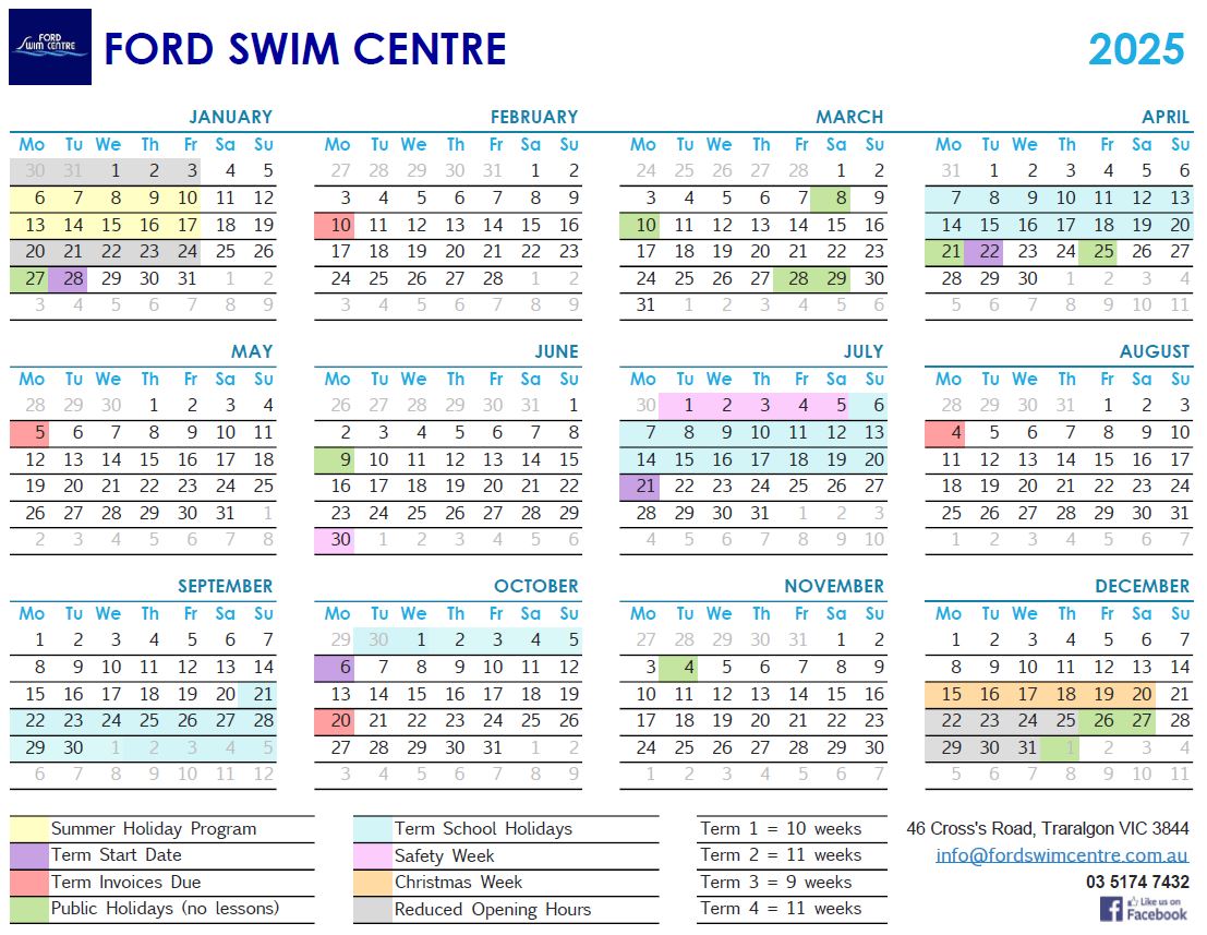 Swim Calendar Ford Swim Centre